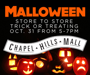 Trick or Treat from store to store at Chapel Hills Mall. Bring the kids or come and see all the costums on October 31st from 5:00 p.m. to 7:oo p.m.
